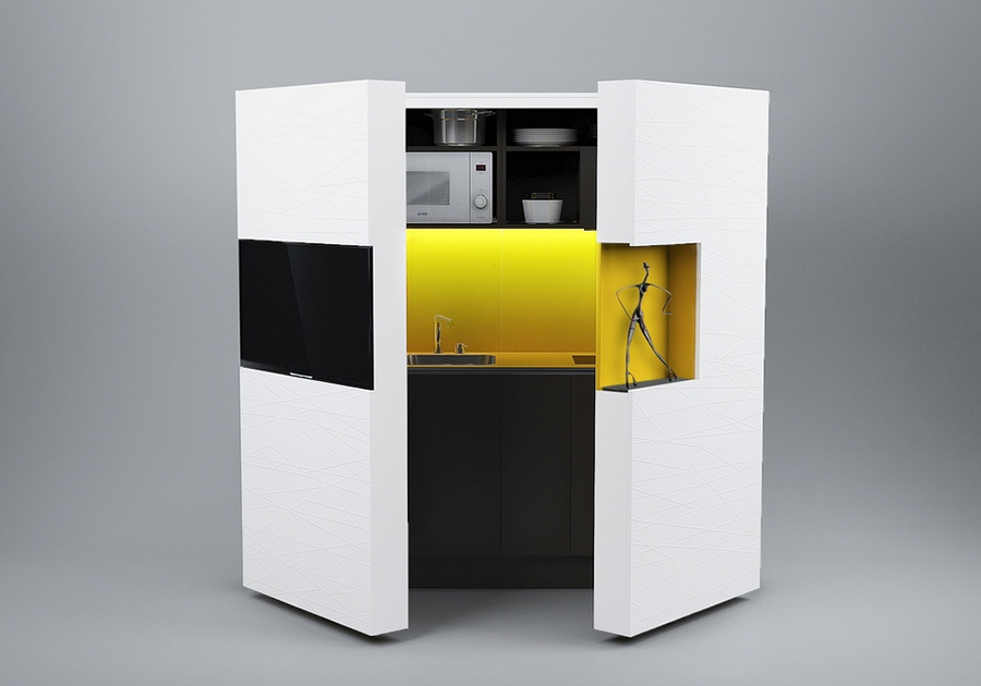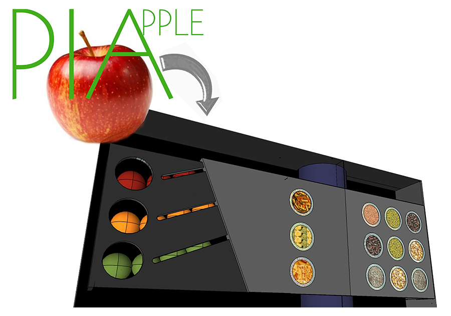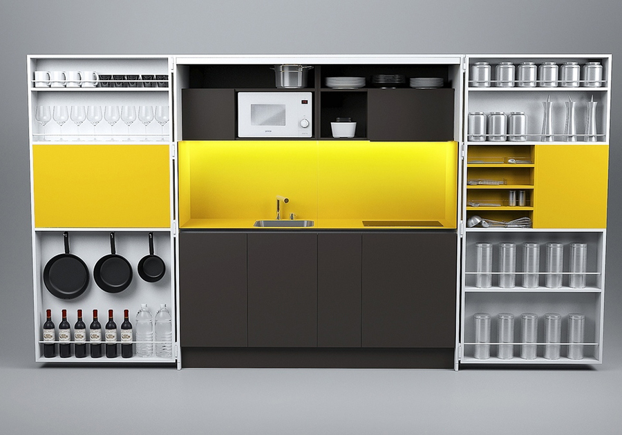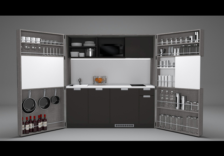 Poigrao sam se na čudan način – iskoristiti detalj unutrašnjosti – namirnice – u rješavnju vanjskog izgleda. Držače za tri vrste voća, te staklene posude za razno sjemenje kao primarne elemente. Druga ideja je bila perforirati vanjski dio vrata u uske izdužene posude za uzgoj začinskog bilja.